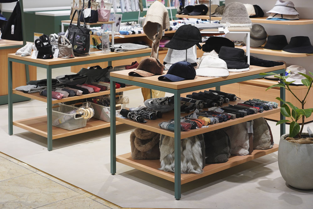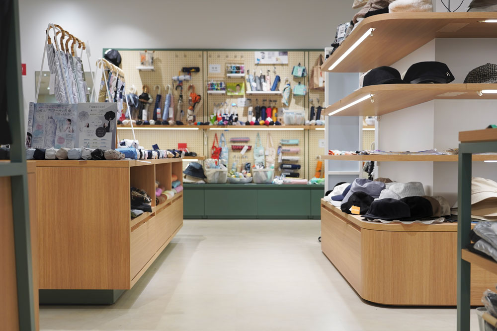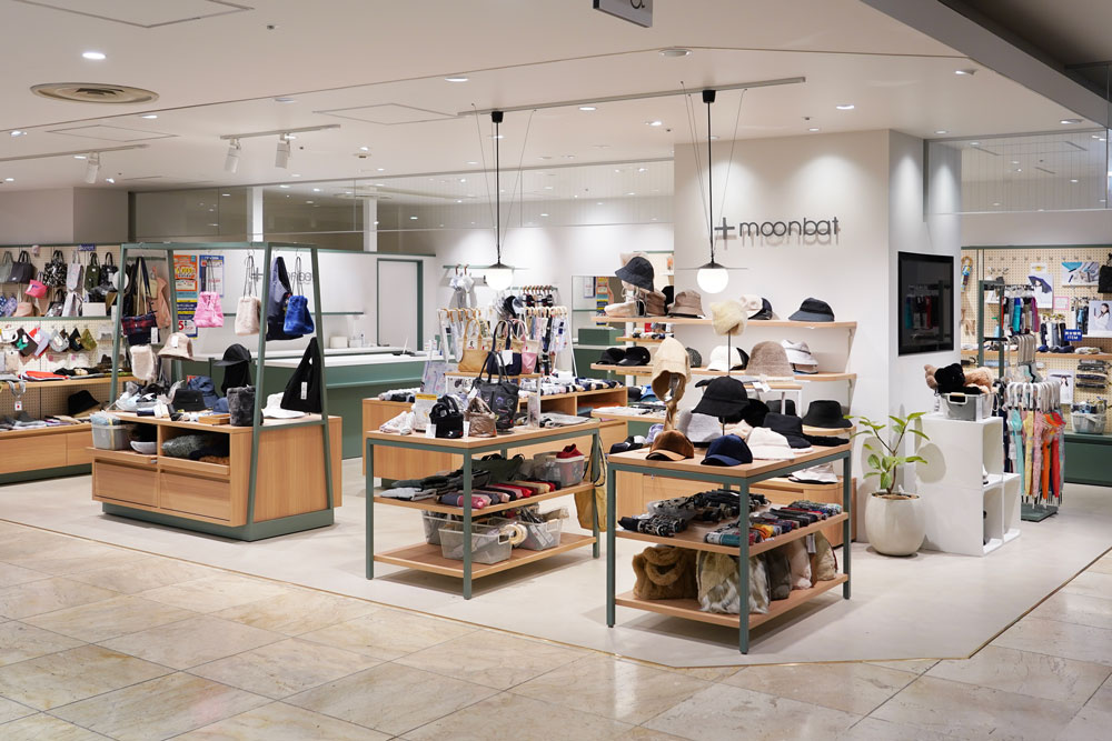 今回アスプルンド建装部では、雨傘・日傘・マフラー・ストール・帽子などのファッション雑貨を販売する「+moonbat(プラスムーンバット)」の店舗設計を行いました。